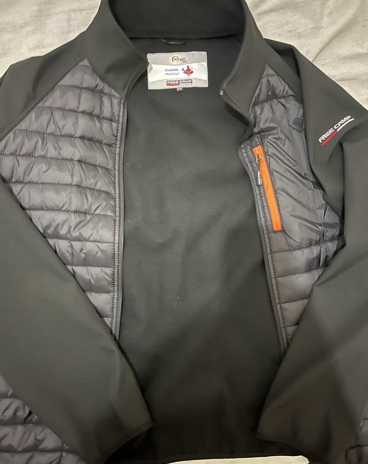 Fermuarlı ve bisiklet yakalı, gri tonlarda sentetik kumaştan yapılmış erkek spor ceket. Uzun kollu ve baskılı desenli, günlük kullanım ve sokak stili için uygun.