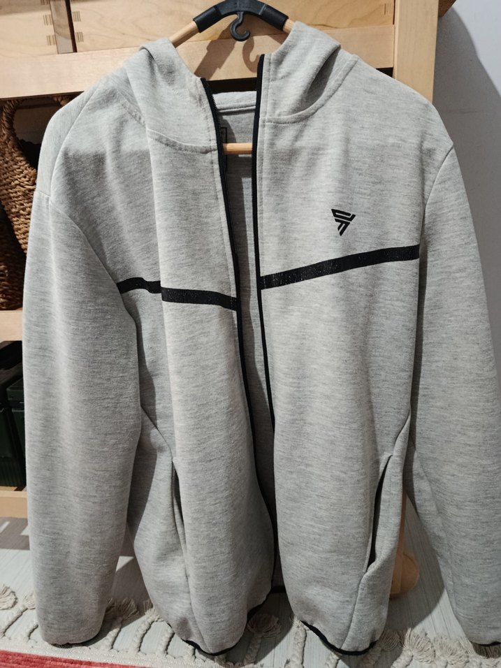 Gri renkli, fermuarlı erkek spor sweatshirtü, uzun kollu ve V yaka olup, normal kesimdir. Baskılı deseniyle spor ve günlük kullanıma uygundur.Kol kısmında minik bir lekesi mevcut.Boy 66 en 52 cm