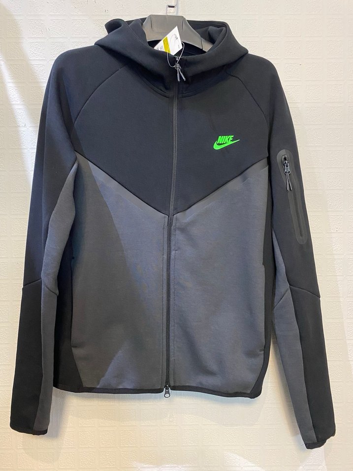 Beden için mesaj atabilirsiniz. marka, siyah ve koyu gri renklerde, fermuarlı, uzun kollu ve bisiklet yaka erkek sweatshirt. Kolda küçük fermuarlı cep ve yeşil logosu bulunur. ♂️