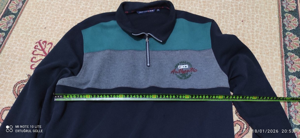 Gri renkli, fermuarlı ve baskılı desenli erkek sweatshirt. Yumuşak kumaştan, bol kesim ve bisiklet yaka. Rahat, günlük dış mekan kullanımı için uygundur.