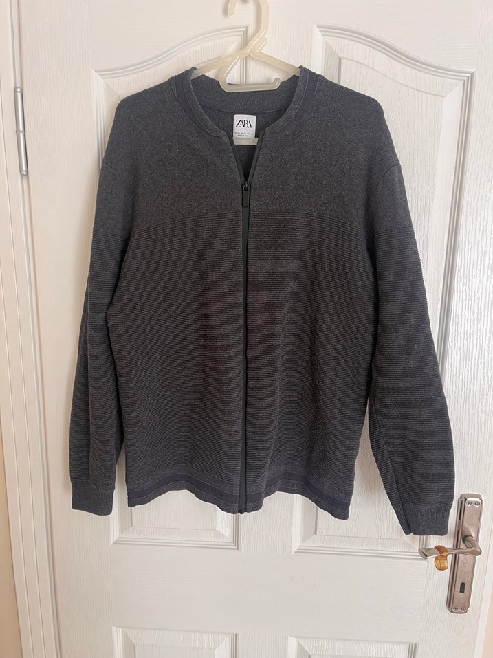 Gri renkte, fermuarlı ve uzun kollu erkek sweatshirtü, yumuşak ve sıcak kumaştan üretilmiştir. Bol kesim ve yuvarlak yakaya sahiptir, günlük kullanıma uygundur.