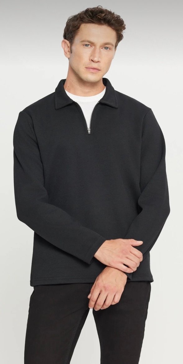 Gri renkte, fermuarlı yaka detayına sahip erkek sweatshirtü. Uzun kollu, normal kesim ve yumuşak, sıcak kumaştan üretilmiştir. Günlük rahat kullanıma uygundur.