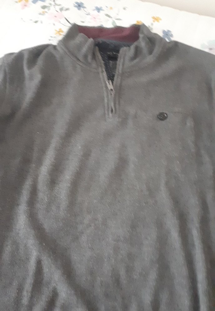 Gri renkli, fermuarlı, yuvarlak yakalı ve uzun kollu erkek sweatshirtü. Rahat kesimi ve yumuşak, sıcak kumaşı günlük kullanıma uygundur.