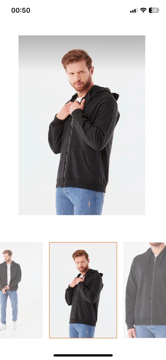 Gri renkli, fermuarlı ve kapüşonlu erkek sweatshirtü, uzun kollu ve rahat kesimdir. Yumuşak ve sıcak kumaştan üretilmiştir, günlük kullanıma uygundur.