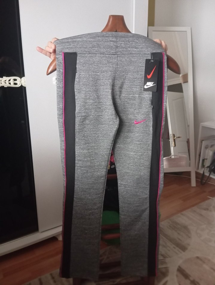 Gri sentetik kumaştan, fermuarlı cepli, yanları siyah ve pembe şerit detaylı, dar kesim eşofman altı. Paça boyu 75 cmdir. Nike 2010 kreasyonundandır.