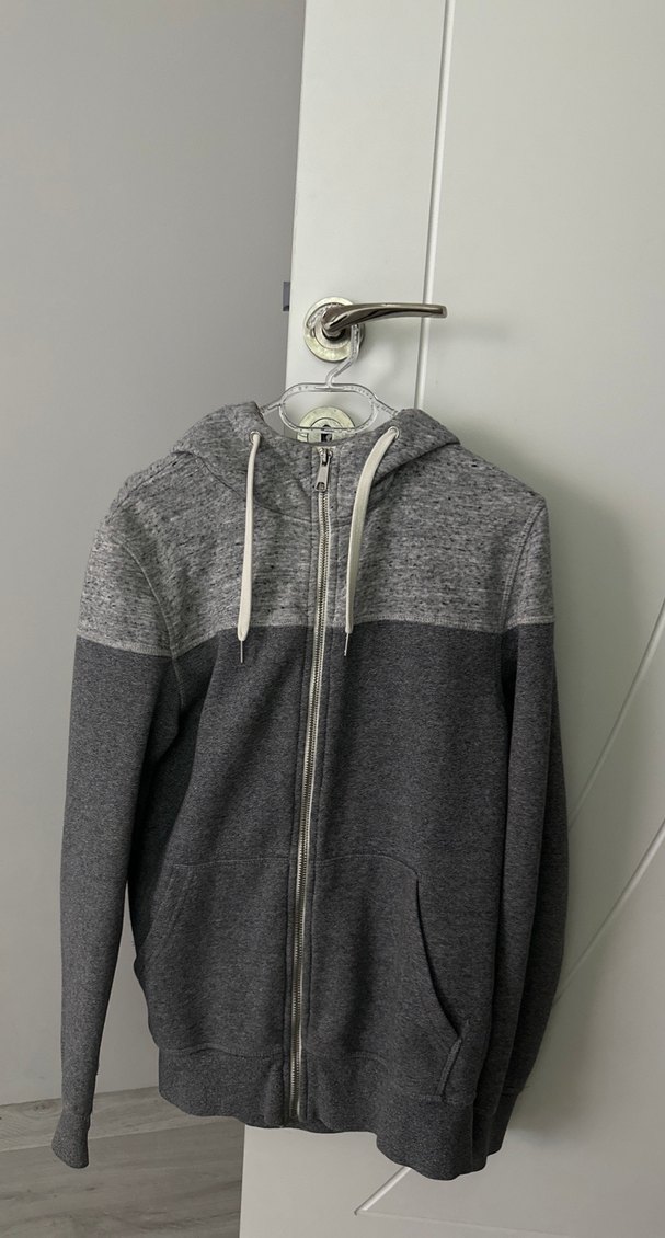 Gri renkli, fermuarlı, kapüşonlu ve uzun kollu hırka Dar kesim ve yuvarlak yaka detaylarına sahip, sentetik kumaştan üretilmiştir.