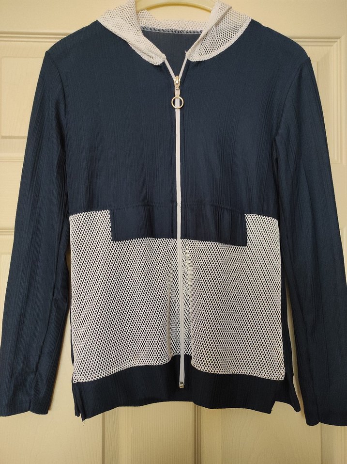Gri fermuarlı hırka ı, uzun kollu ve yuvarlak yaka ile rahat bir kesime sahiptir. Beyaz file cep ve kapüşon detaylarıyla şık bir görünüm sunar.