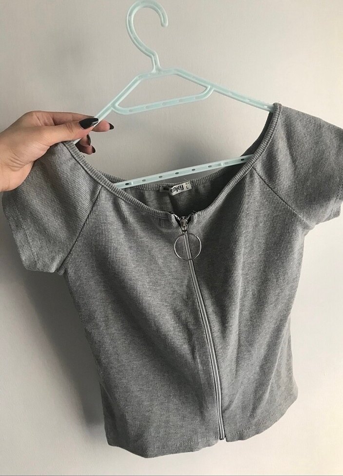 Gri renk, kısa kollu ve bisiklet yaka kadın crop top. Önden fermuarlı ve pamuklu kumaştan üretilmiştir, rahat bir kullanım sunar. Marka temsili