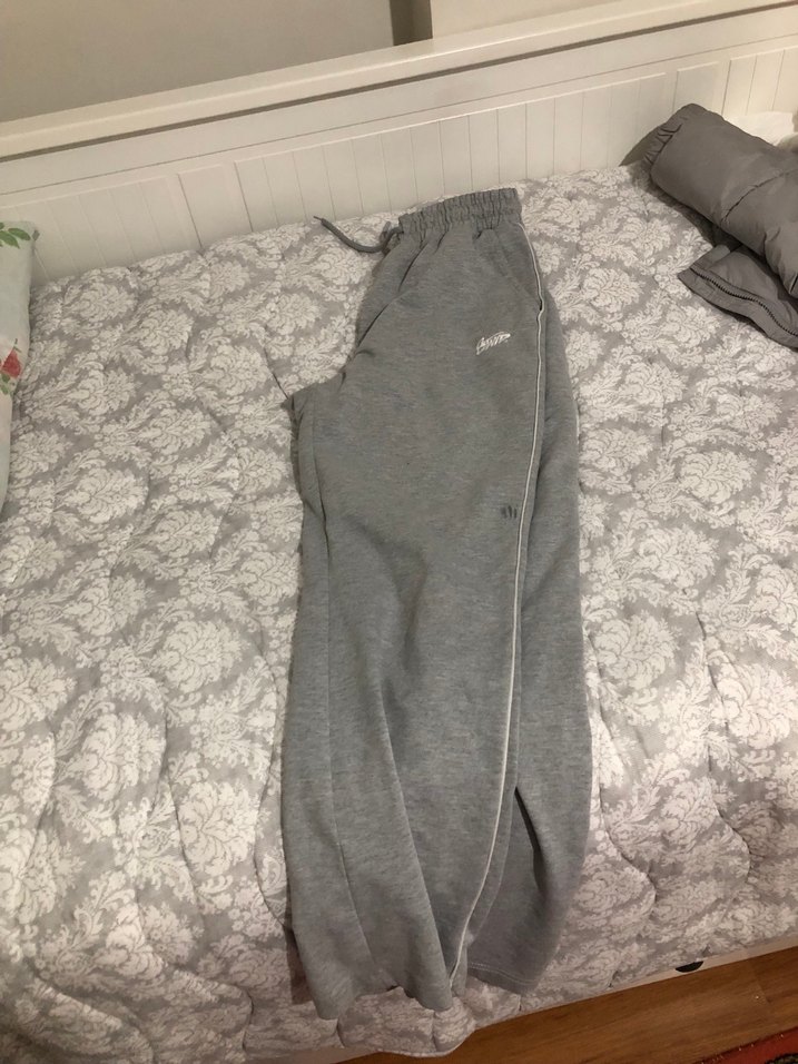 Gri, fermuarlı cepli, yumuşak ve sıcak kumaştan yapılmış bol kesim midi uzunlukta kadın eşofman altı. Günlük rahat kullanıma uygundur.