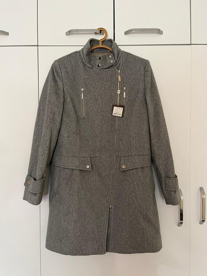 Gri kaban hiç giyilmemiştir. Yeni ve etiketlidir. Nihan markasına aittir. 38 bedendir. Uzunluğu 85 cmdir. Şapkası fermuarli olduğu için çıkarılabilir. İster şapkalı ister şapkasız kullanılabilir. Cepleri vardır.