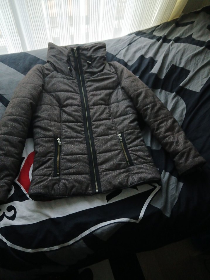 Gri Fermuarlı Kadın Kışlık Mont