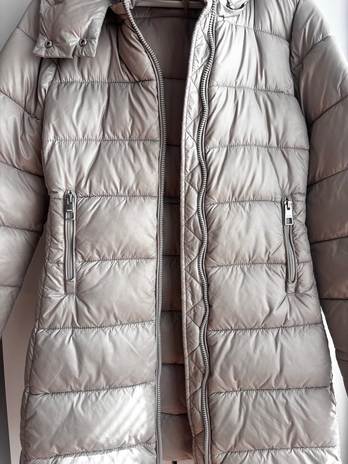 Gri renkli, fermuarlı cepleri olan kadın kışlık mont. Yumuşak sentetik kumaştan, uzu. ve sokak stiline uygun kesimde tasarlanmıştır. Orjinal marka çok az giyilmiş ❄️