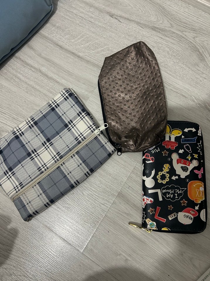 Gri Fermuarlı Kadın Makyaj Çantası kalemlik ve cüzdan