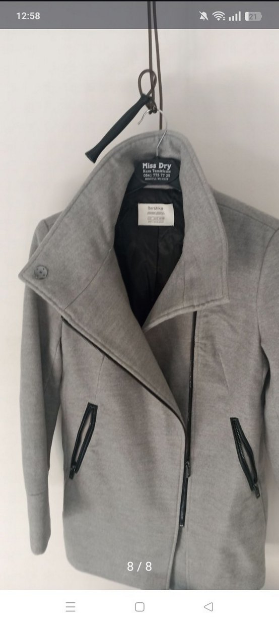 Bershka Gri Fermuarlı Kadın Midi Ceket