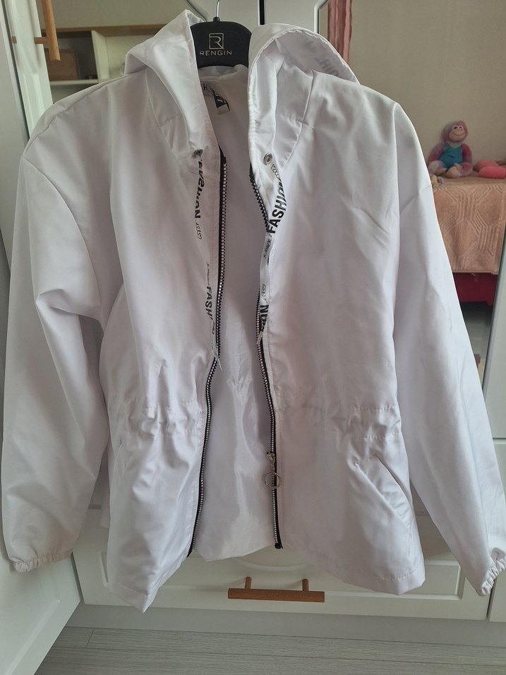 Bu kadın midi ceket, bol kesim, uzun kollu ve çentikli yaka detayına sahiptir. Fermuarlı kapama ve yumuşak sentetik kumaştan üretilmiştir, günlük sokak stili için uygundur. Açık gri renktedir ve rahat athleisure tarzındadır.