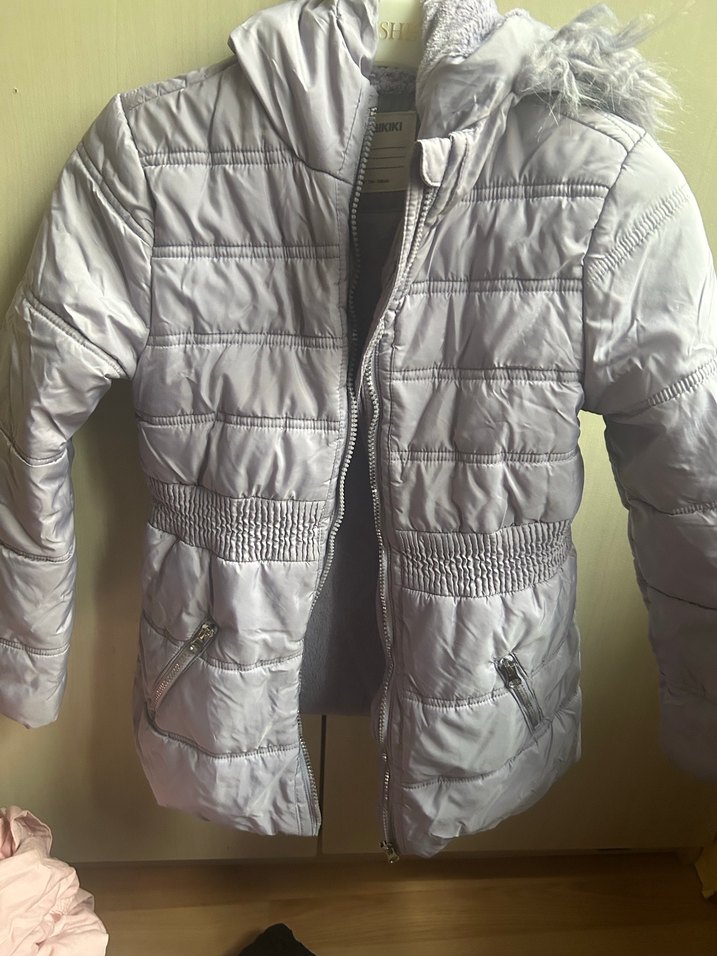 Fermuarlı, uzun kollu, gri renkli, sentetik kumaştan yapılmış, normal midi uzunluğunda, notched lapel yakalı, rahat ve sokak tarzı kadın mont. 9.10 yaş