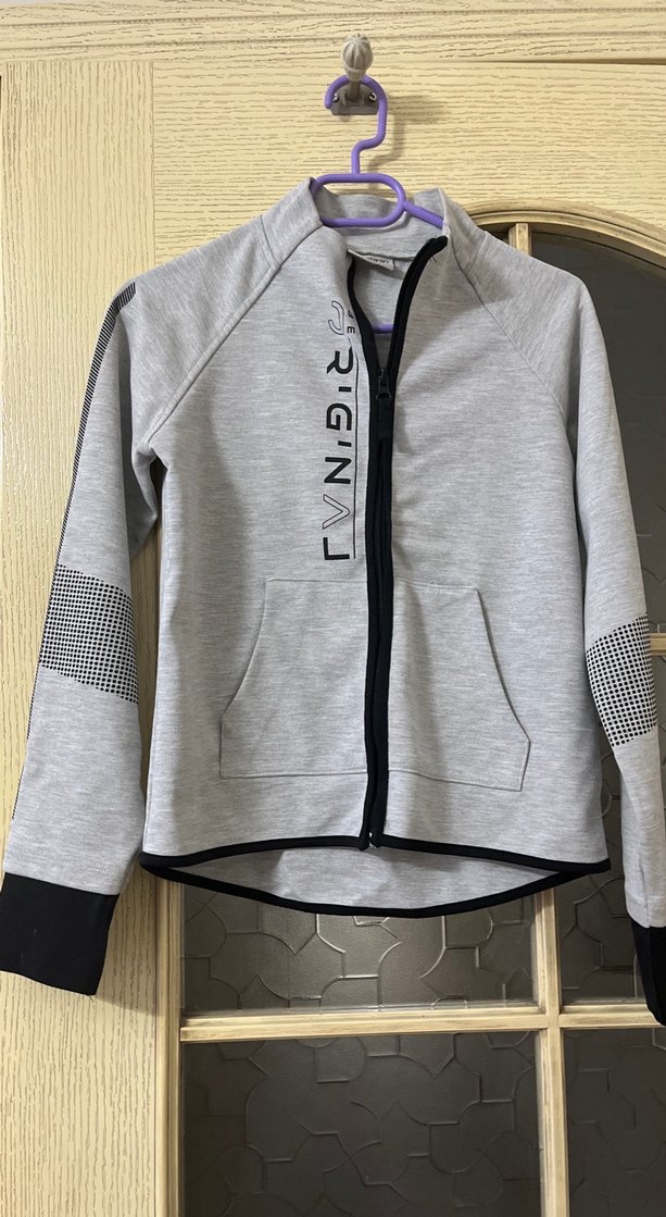 Fermuarlı, uzun kollu ve bisiklet yaka gri kadın mini ceket. Sentetik kumaştan, baskılı detaylara sahip, trend sokak stili için uygun. 9 10