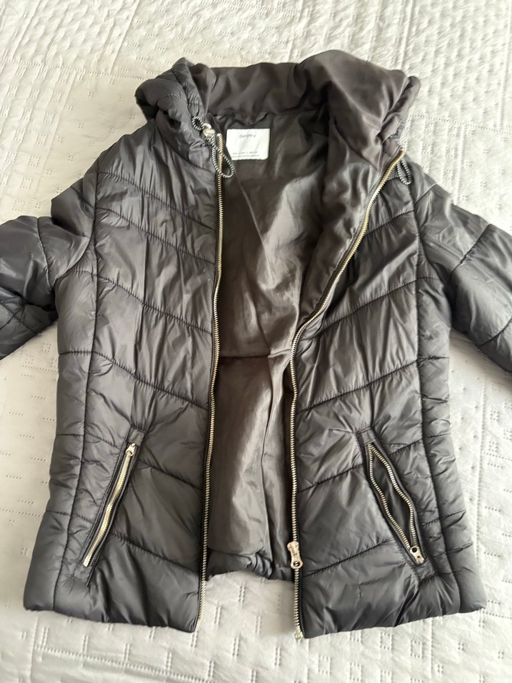 Gri Fermuarlı Kadın Mont