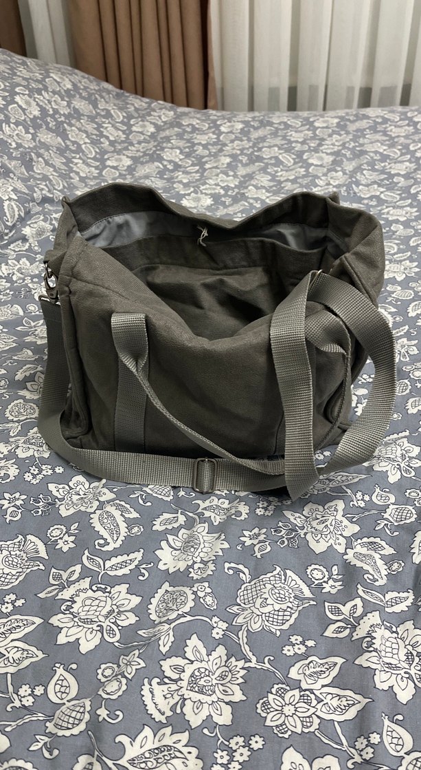 Gri renkli, fermuarlı, sentetik kumaştan yapılmış kadın çantası. Düz ve desensiz tasarımıyla sokak stiline uygun, ayarlanabilir askılıdır.