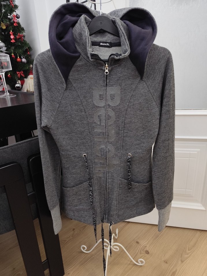 Gri fermuarlı kadın Spor ceket , fitted kesim, yuvarlak yaka ve uzun kolludur. Yumuşak ve sıcak kumaştan üretilmiş, kapüşonlu ve baskılı desene sahiptir. Günlük ve sokak stiline uygundur. m bedenede olur