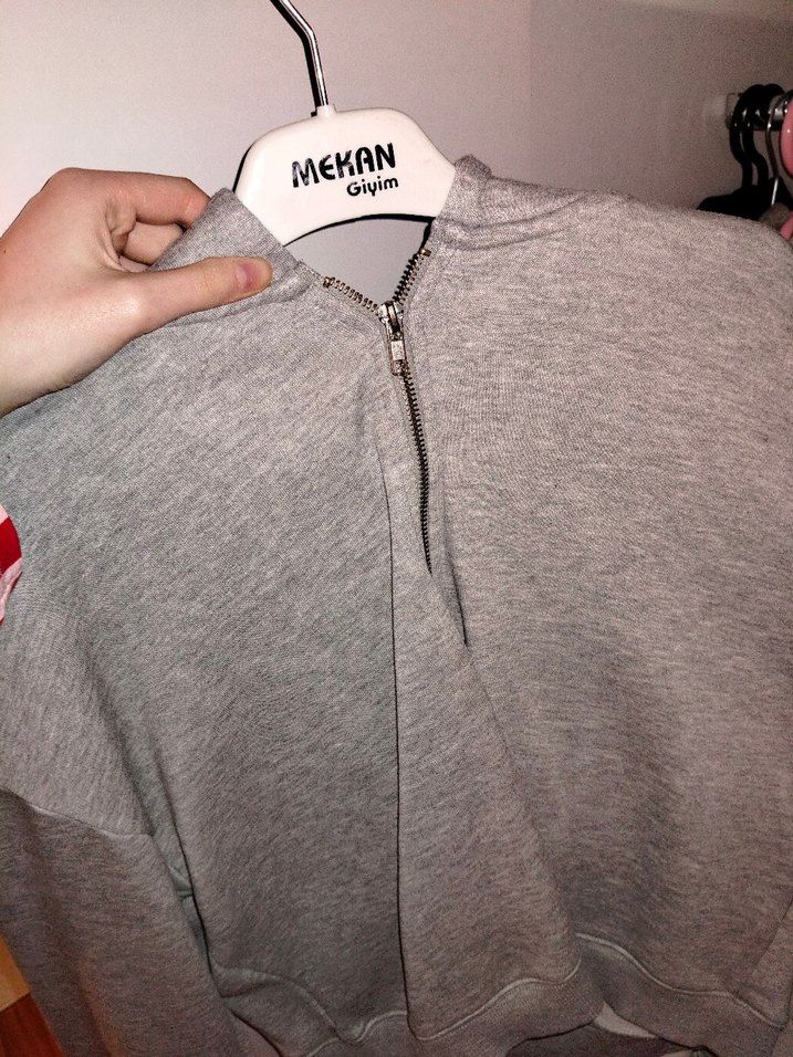 Gri renkli, fermuarlı ve bisiklet yaka olan bu kadın sweatshirtü, yumuşak dokulu kumaştan yapılmıştır. Uzun kollu ve normal boydadır, günlük rahat kullanım için uygundur.