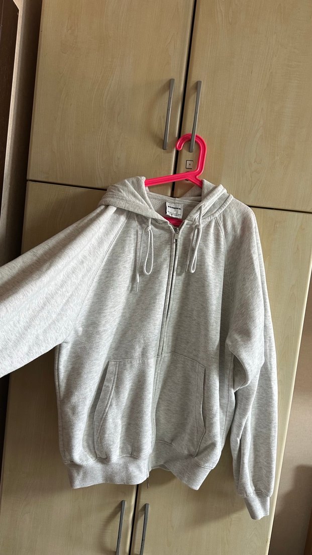 Gri renkte, fermuarlı, uzun kollu ve bol kesim kadın sweatshirt. Yumuşak ve sıcak kumaştan üretilmiştir, gündelik kullanıma uygundur.