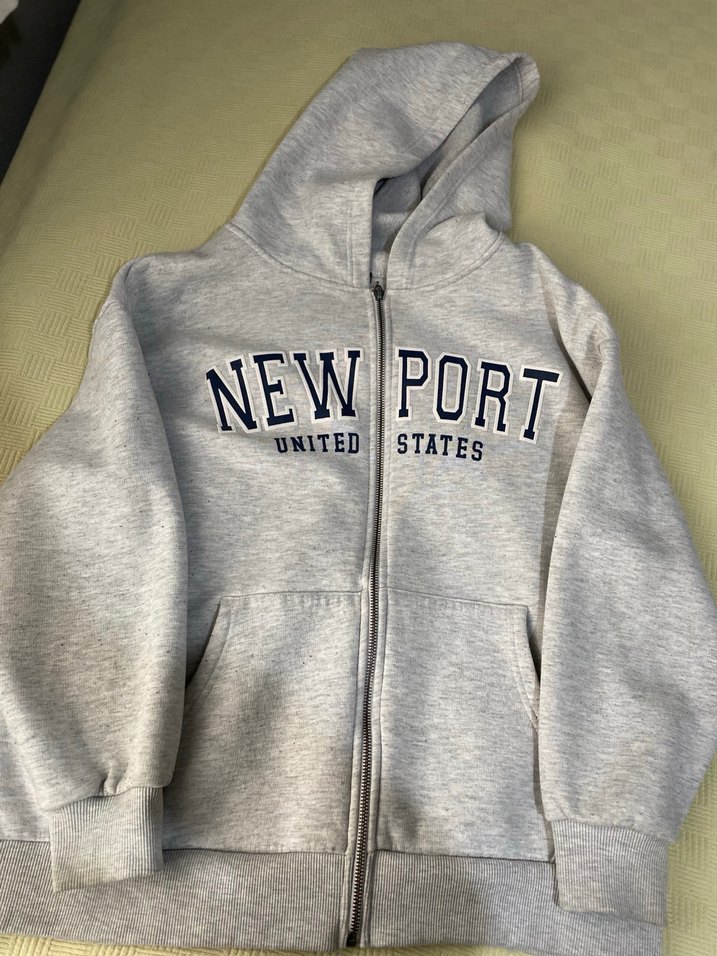 Gri fermuarlı sweatshirt, "NEW PORT UNITED STATES" baskılıdır. Uzun kollu, yuvarlak yaka ve bol kesimdir. Yumuşak ve sıcak kumaştan üretilmiştir. ♀️