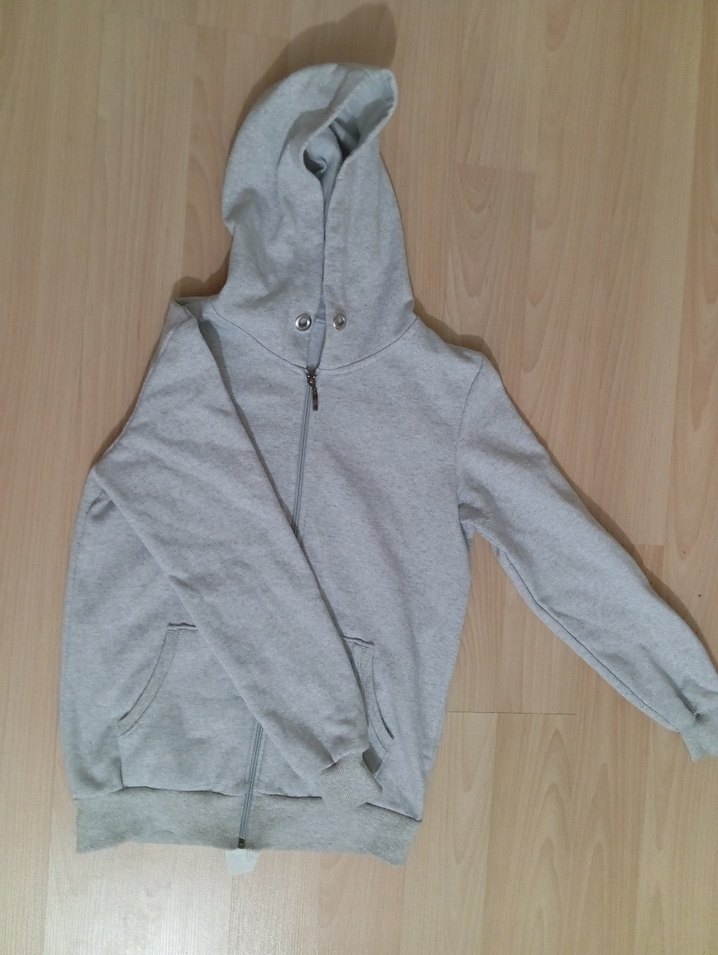 Gri renkli, fermuarlı ve kapüşonlu kadın sweatshirtü. Yumuşak kumaştan, uzun kollu ve rahat kesimlidir. Günlük kullanıma uygundur.
