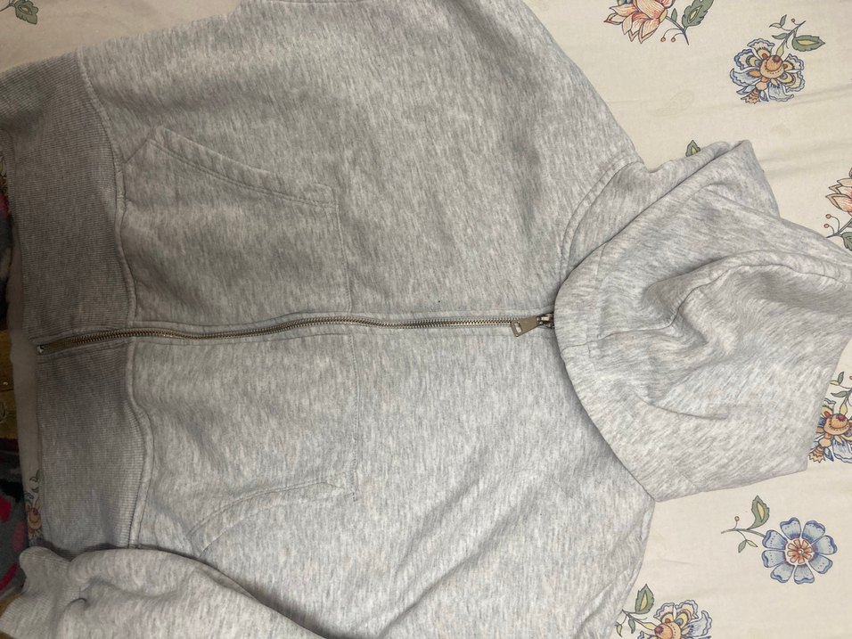 Gri renkte, yüksek yakalı ve uzun kollu, fermuarlı, rahat kesim kadın sweatshirtü. Yumuşak keten kumaştan üretilmiştir. Günlük kullanım için uygundur.