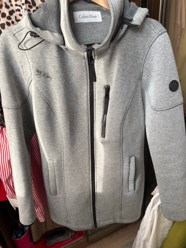 Fermuarlı ve uzun kollu, gri renkli, yumuşak kumaştan yapılmış, Calvin Klein etiketli, sokak modasına uygun kadın sweatshirt ceket. Ufak kusurları var tüylenme vs görsellerde mevcut s xs ve m bedene uygun kusurlarından dolayı fiyat düşük