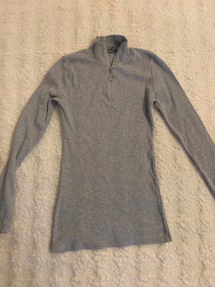 Gri, uzun kollu ve fermuarlı yüksek yakalı ve vücuda oturan triko. Bir defa kullandım ve vücudu çok güzel sarıyor. Hiç bir yerinde yırtık, sökülme vb. sorun yoktur.