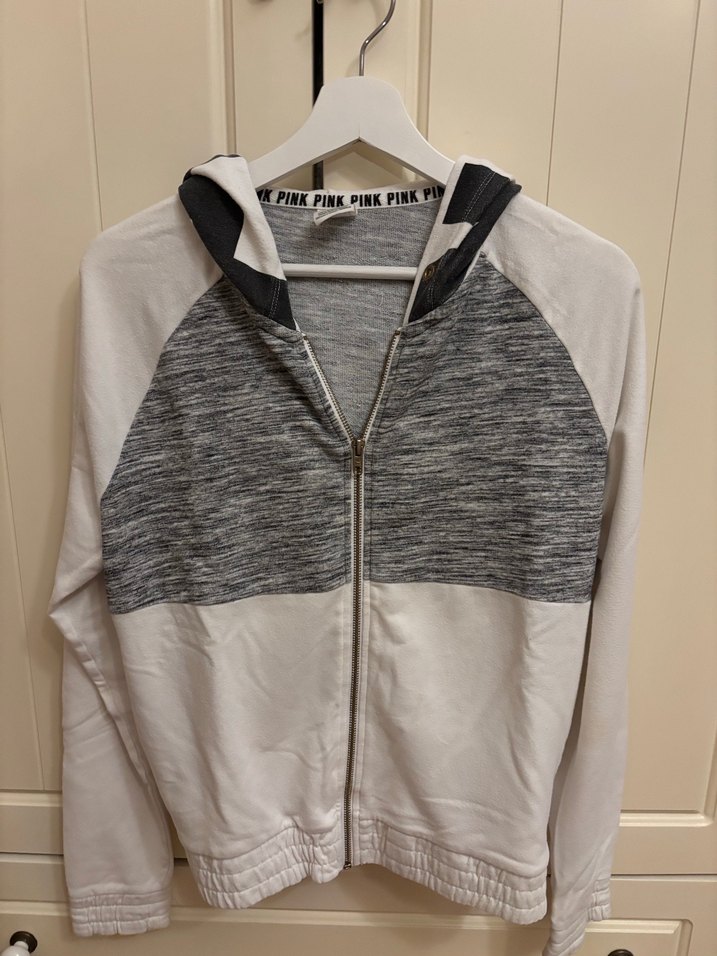 Fermuarlı, yüksek yakalı ve uzun kollu bu kadın sweatshirtü, gri ve beyaz tonlarda, yumuşak ve sıcak kumaştan, günlük kullanıma uygun şık bir sokak stili sunar.