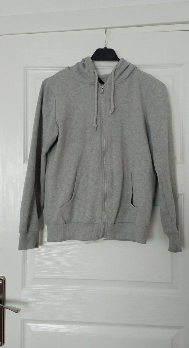 Gri renkli, fermuarlı, kapüşonlu ve uzun kollu kadın sweatshirtü. Rahat kesimi ve yumuşak, sıcak kumaşı ile günlük kullanıma uygundur.