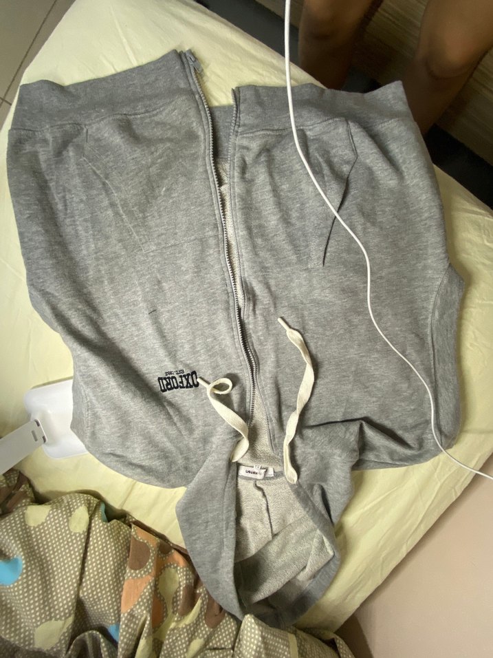 Gri renkte, fermuarlı ve kapüşonlu, bol kesim sweatshirt. Kısa kollu ve rahat, yumuşak kumaştan üretilmiştir. Günlük kullanım için uygundur.