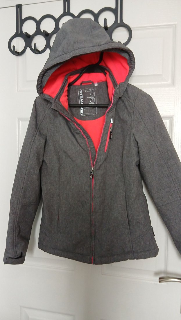 Fermuarlı ve kapüşonlu, yumuşak ve sıcak kumaştan yapılmış gri, dar kesim kız çocuk ceket. Uzun kollu, çıtmalı yakalı, günlük rahat sokak stili için uygun midi boy. iç kısmı polar
