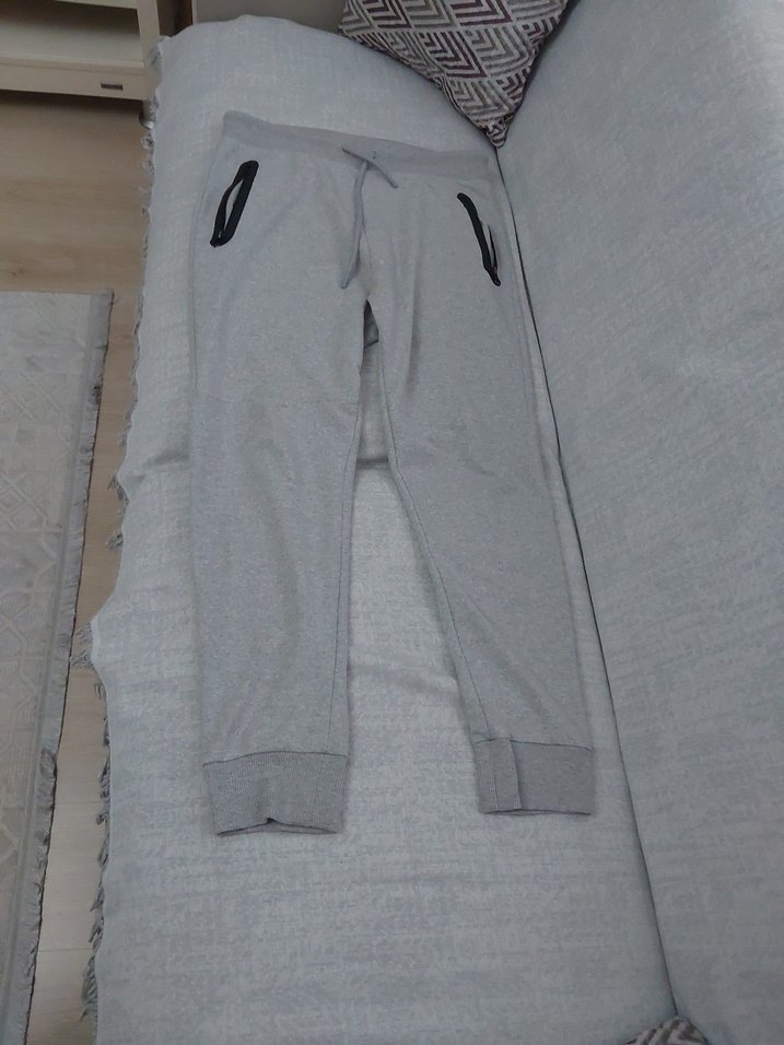 Yumuşak ve sıcak kumaştan yapılmış, fermuarlı cepleri olan gri rahat kesim erkek eşofman altı, spor ve günlük kullanım için uygundur.