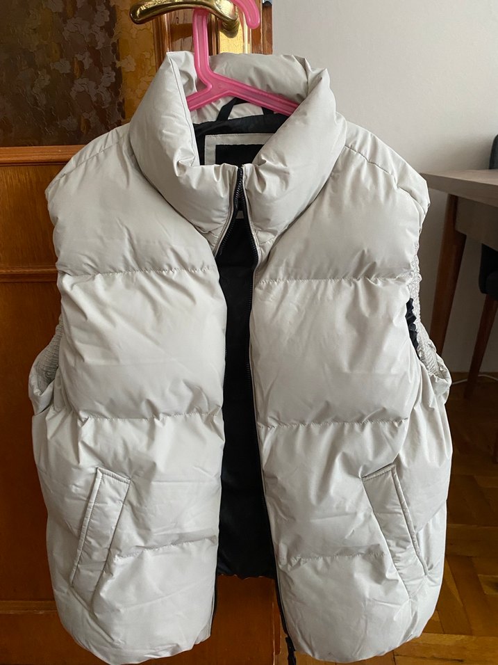 Yüksek yakalı, fermuarlı ve yumuşak kumaştan yapılmış, fitted kesime sahip gri yelek. Günlük rahat stil için uygundur. 2 kere giyildi sıfır gibi