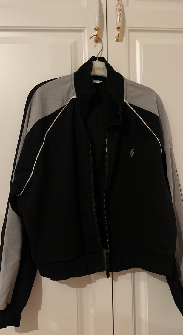Bu dar kesim kadın ceket, yüksek yakalı ve uzun kolludur. Fermuarlı ön kısmı ve yumuşak, sıcak kumaştan üretilmiştir. Gri ve siyah tonlarıyla desen içermeyen sade tasarıma sahiptir.