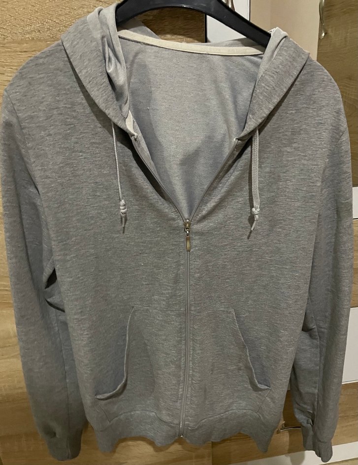 Bu sweatshirtü fermuarlı ön kısmı ve bisiklet yaka ile tasarlanmıştır. Uzun kollu, bol kesim ve düz gri renkte yumuşak kumaştan üretilmiştir.