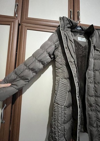 Gri Fermuarlı Uzun Kadın Kış Montu