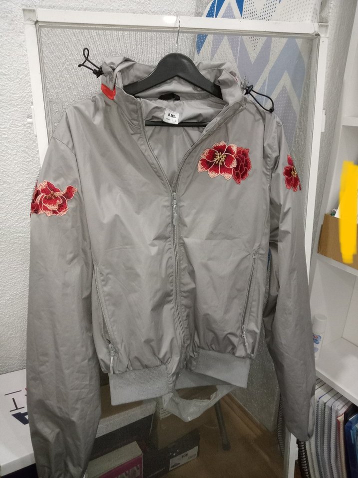 Gri renkte, düğmeli ve baskılı desenli yağmurlukk ceket. Sentetik kumaştan, yakalı ve uzun kolludur. Normal boy ve regular fit kesimdedir. ABB etiketi taşır. dar kalıp biraz