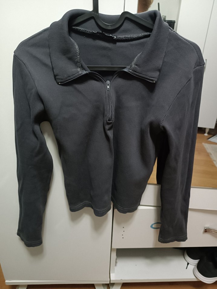 Bu dar kesim kadın crop , uzun kollu, fermuarlı antrasit renk 1 kere giyildi