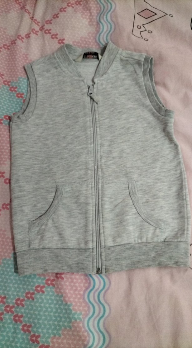 Gri renkte, fermuarlı ve fit kesim çocuk yeleği. Yumuşak ve sıcak kumaştan üretilmiş, kolsuz ve ön ceplidir. Tertemiz az kullanıldı .