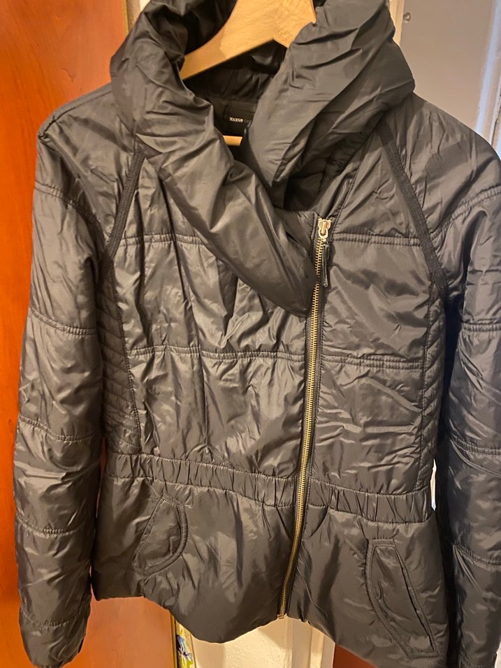 Fermuarlı ve yüksek yakalı, sentetik kumaştan yapılmış gri, fitted kadın ceket. Strappy kollu ve normal boyda, günlük kullanıma uygun sokak stili.
