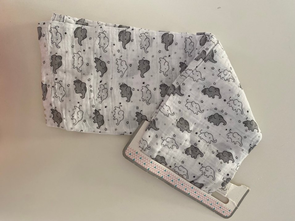 Gri renkte, fil desenli çocuk battaniyesi, yumuşak sentetik kumaştan yapılmıştır ve rahatlık sunar.