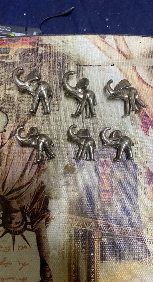 Döküm Metal Fil Biblo Takımı Ayak altındaki gri metalik doku, bunların pirinç üzeri kaplama veya döküm alaşım (zamak) olduğunu doğrulamaktadır. • Set Halinde (5'li Takım): 500 TL – 850 TL (Döküm metal biblolar genellikle bu bantta satılmaktadır). • Tekli Satış: Adet başına 120 TL – 200 TL civarında bir fiyat belirlenebilir. • Kriter: Fil biblolarında "hortumun yukarı bakması" bir şans sembolü olarak görüldüğü için bu modelleri ön plana çıkararak pazarlayabilirsiniz.