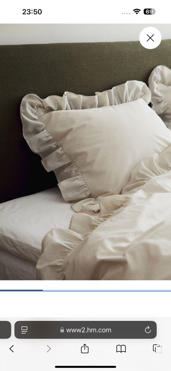Yumuşak kumaştan, gri fırfırlı beyaz nevresim ve yastık kılıfı seti, yatak odasına zarif bir dokunuş katıyor. ️