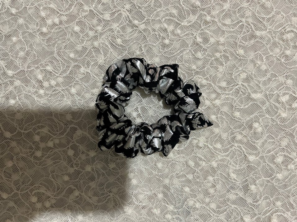 Gri renkli, fırfırlı sentetik kumaştan yapılmış, gotik ve avangart stile sahip saç tokasıdır. El emeğidir