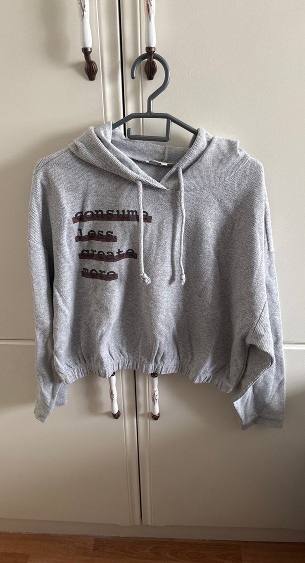 Gri fitilli Kadın Kapüşonlu Sweatshirt