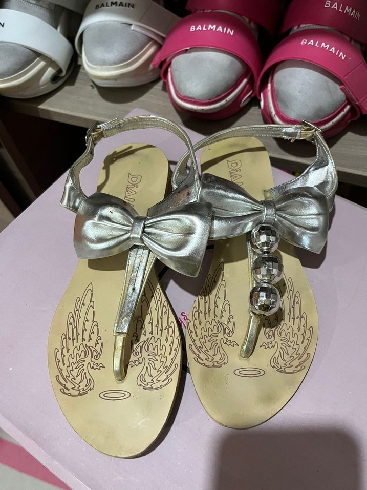 Gri renkte, fiyonk ve süs boncuklu modern tasarım gelin sandaletleri, avangart bir şıklık sunar. süslü aksamlara uygundur bir tarafının boncuklari çıktı diğer tarafı isteyen çıkarabilir ayakkabida yirtik sorun yoktur Sorunsuzdur herseyi fiyata yansıtıyorum zaten belirtiyorum da aciklamalar okunulsun markalar hep temsilidir